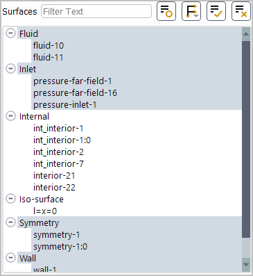 The outline view tree, located on the left side of the Fluent GUI, is an interactive representation of your project. Its items are listed in an order that complements the typical problem setup you follow in the ribbon. Branches can be expanded and collapsed to suit your preferences.