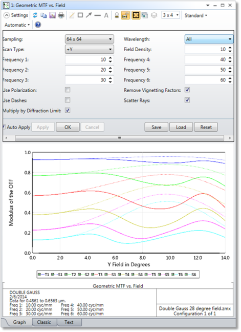Discussion This feature is nearly identical to the (diffraction) MTF vs. Field feature, except the geometric MTF is used rather than the diffraction based MTF