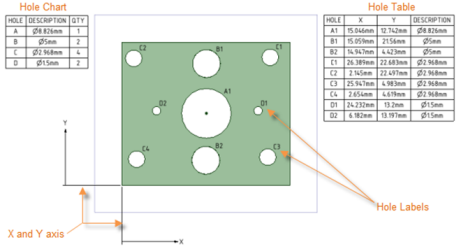 Contents 细节设计 » 标注 » 孔表Print page 孔表 孔表作为注释平面显示在结构树中。可取消选中注释平面复选框以隐藏孔表。孔图表会显示设计中直径相同的孔的数量。创建孔表后,将出现原点、X 轴标签和 Y 轴标签,如下图所示。可创建孔图表: 本节包含以下主题:创建孔表移动孔表原点设置孔表元素的字体文本属性格式操作孔表 « 复制表格内容创建孔表 »