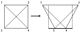 Visualization in three dimensions is much more difficult but if such distortions occur in a region of many elements, patterns such as that shown below occur and the reason for the name of "hourglass instability" is more easily understood.