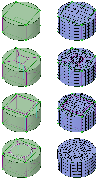 - The top row shows the basic blocking with no layers. Cells near the vertices on