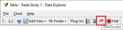 Contents Trade Study Tools » RSM Toolkit » How to Open the RSM ToolkitPrint page How to Open the RSM Toolkit Run or open a Trade Study. In the Data Explorer toolbar, click the RSMToolkit button. The RSM Toolkit opens. « RSM ToolkitHow to Create an RSM using the RSM Toolkit »