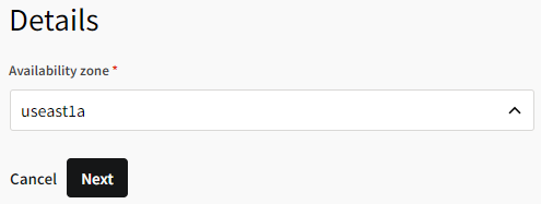 Select the availability zone where the file storage server will be provisioned. To ensure the fastest data transfer speeds, select a zone that is in the same region where the cluster will be provisioned.
