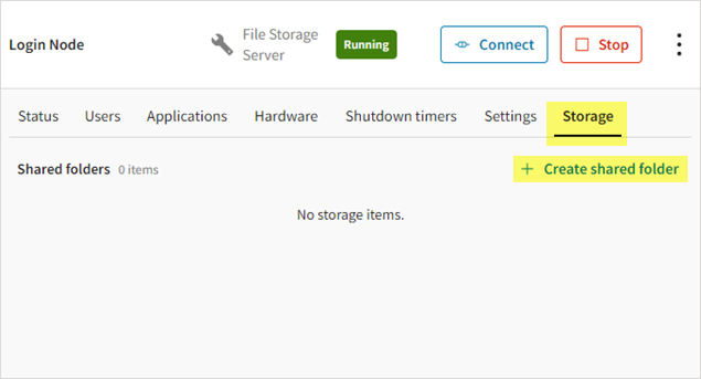 When the file storage server is in the Running state, make sure that you see the Connect button displayed.