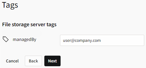 Specify a name and optionally a description for the file storage server.