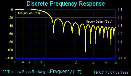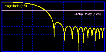 The frequency response of the Sinc pulse Z transform appears in the picture below. Note the constant group delay.