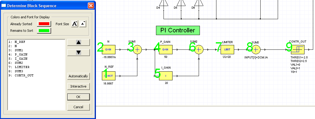 The sequence of block computation can significantly influence the simulation result. Select Schematic > Sort Components to change the block sequence.