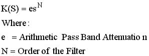 Note that the band width of the functions is essentially set by the variable "e". Iterations are generally required to set the band width to the desired width at the specified attenuation.