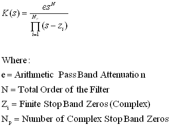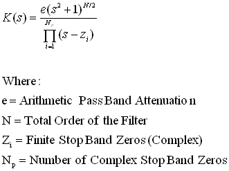 The addition of stop band zeros, generally referred to as a "Maximally Flat" filter, modifies the characteristic equations to be:
