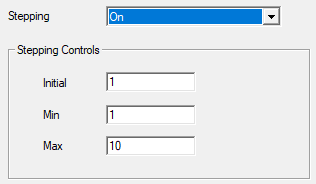 - On: User-defined stepping is enabled. When this option is selected, the following additional settings appear in the dialog box: