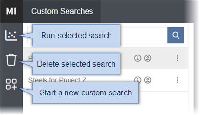 3. Use the toolbar options run or delete one of your saved custom searches, or to add a new search definition.