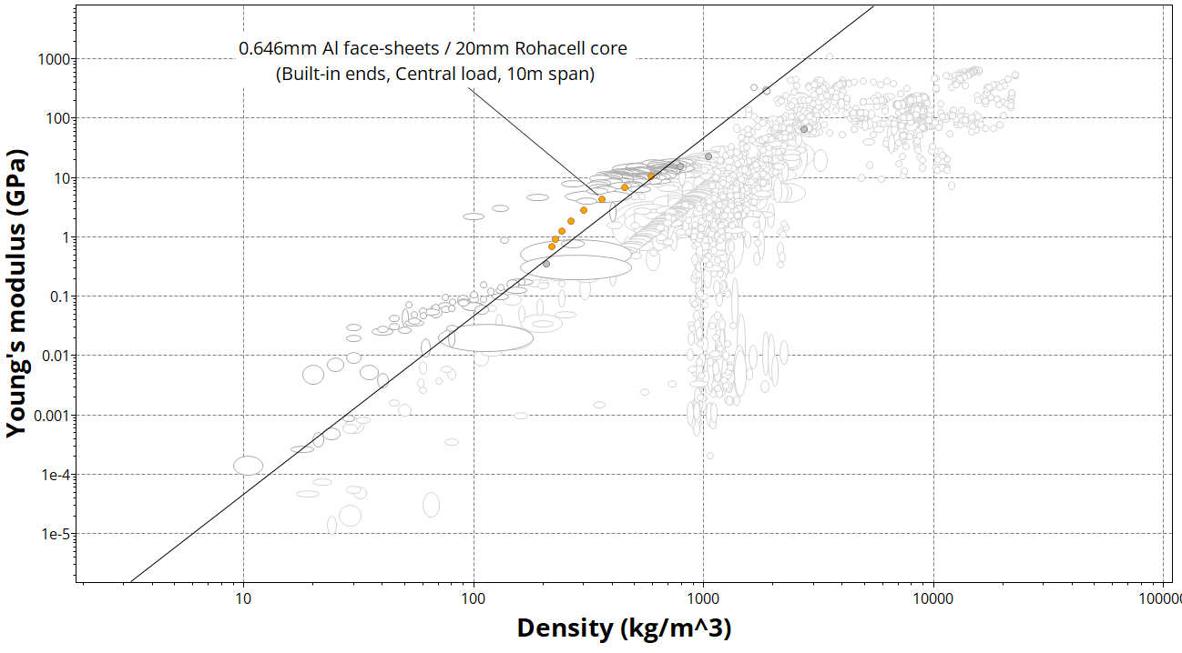 6. Plot an Index line corresponding to a lightweight, stiff panel in bending Ef1/3/ρ