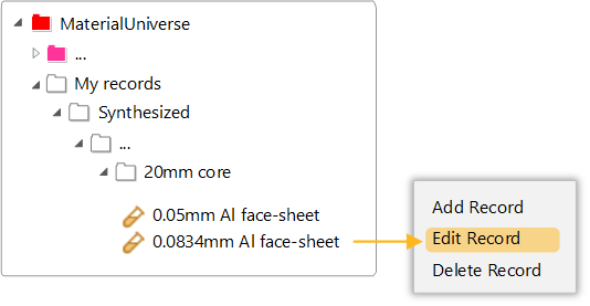 Synthesized records appear on the Browse tree under My Records. They can be edited or deleted in a similar way to User-defined records, by right-clicking and selecting Edit Record or Delete Record.