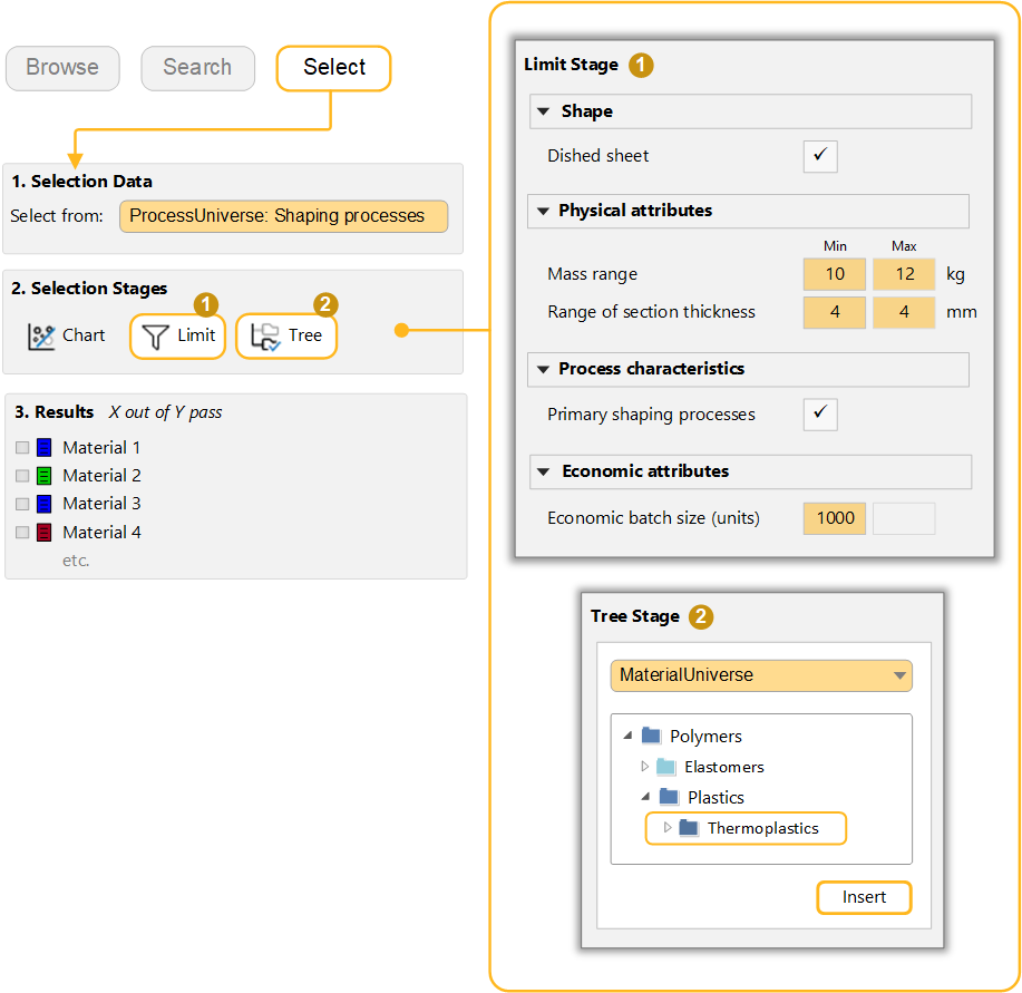 Combine Limit and Tree selection stages to identify processes which meet mutlitple selection criteria.