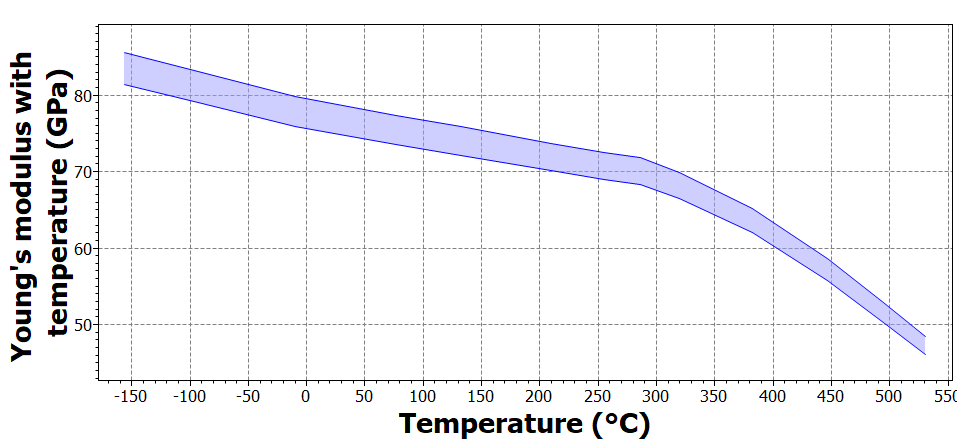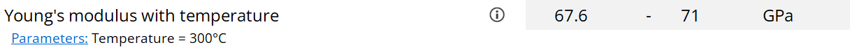 Young's modulus, for example, varies with temperature, and certain material datasheets contain the functional attribute "Young's modulus with temperature". The data value is evaluated at the default project parameter values, although this can be changed by clicking Parameters underneath the attribute and editing the parameter value.