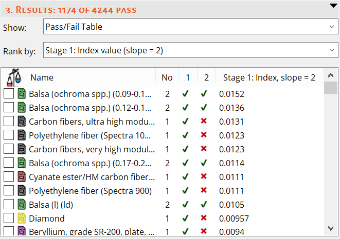 The pass/fail table shows pass/fail information for each record in each stage. It