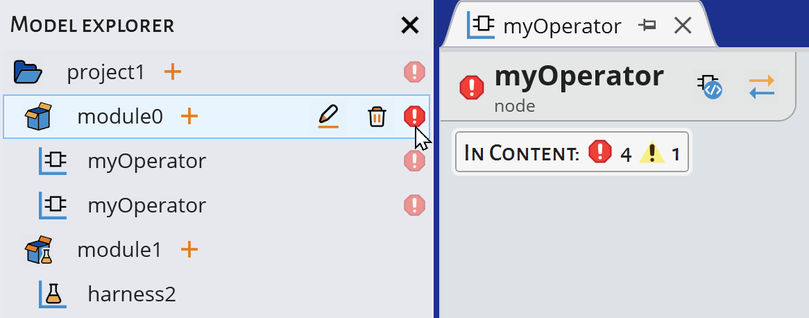 in the Model Explorer in case of syntax and namespace