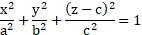 楕円体では、x、y、z 各方向の半軸方向長さが互いに異なります。「a」、「b」、「c」をそれぞれ x、y、z 各軸の半軸方向長さとすると、頂点の方向が z 軸方向と一致している楕円体は次の式で記述できます。