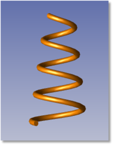 螺旋形状を作成します。螺旋の軸は、+Z 軸に沿って配置されます。螺旋の「針金」の部分は radius を半径とする円形の断面を持ちます。Z 軸から針金の中心までの巻き半径は、螺旋の開始位置の R1、終了位置の R2 を指定します。巻き数 turns の値は、整数でなくても構いません。pitch の値は、1 巻きごとの Z 座標の変化です。radius パラメータは、R1 および R2 の小さい方の 1/3 以下にする必要があります。