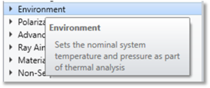 See Wavelengths and Thermal Analysis for more information. For more information on changing the temperature and pressure of individual surfaces see Defining multiple environments within a single configuration