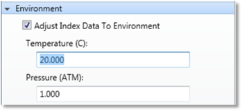 Adjust Index Data To Environment: If checked, all index data used for ray tracing will be adjusted from the "raw" glass catalog values to be relative to the system temperature and pressure. For details see Index of refraction computation. Individual surfaces may have a temperature and pressure that is different from the system temperature and pressure; for these surfaces the index data will be adjusted to reflect the environment of the surface.