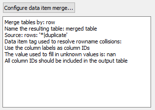 | Force numeric table output | When selected, the output table is output as a table of numbers. The merge operation preserves the cell type of the input tables where possible. If any string tables are encountered, the output is a string table. | |