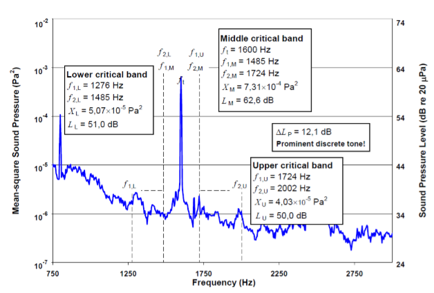 The Prominence Ratio (PR) computation is detailed in both ECMA-418-1 (former ECMA 74 Annex D) and ISO7779:1999 standards. It is applicable for tones whose frequencies stand between 89.1 and 11 220 Hz.