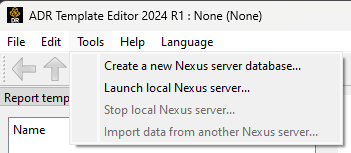 The next step is to use this application to launch an Ansys Dynamic Reporting server and connect it to the example database. On the menu bar, select > .