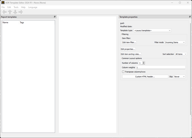 adr_template_editor, or double-click the adr_template_editor.bat file.This launches an application that controls the templates for the Ansys Dynamic Reporting reports.