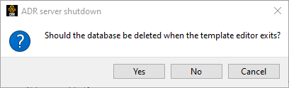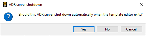 The dialog asks if the server should be shut down when you quit the Ansys Dynamic Reporting Template Editor. If you answer No, the server will remain running and accessible by your web browser even after you quit the application. Click .