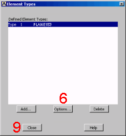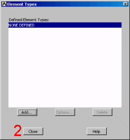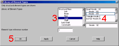 In any analysis, you select elements from a library of element types and define the appropriate ones for the analysis. In this case, only one element type is used: PLANE183, a 2D, quadratic, structural, higher-order element.