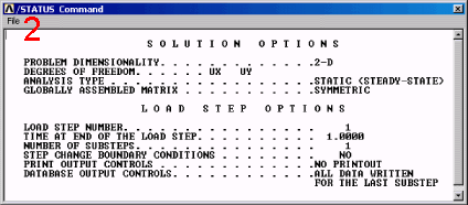 Mechanical APDL stores the results of this single-load-step problem in the database and in the results file, Jobname.RST (or Jobname.RTH for thermal, Jobname.RMG for magnetic). The database can contain only one set of results at any given time, so in a multiple-load-step or multiple-substep analysis, Mechanical APDL stores only the final solution in the database.