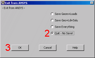 Exit the Mechanical APDL program. Upon exiting, you have the following options: