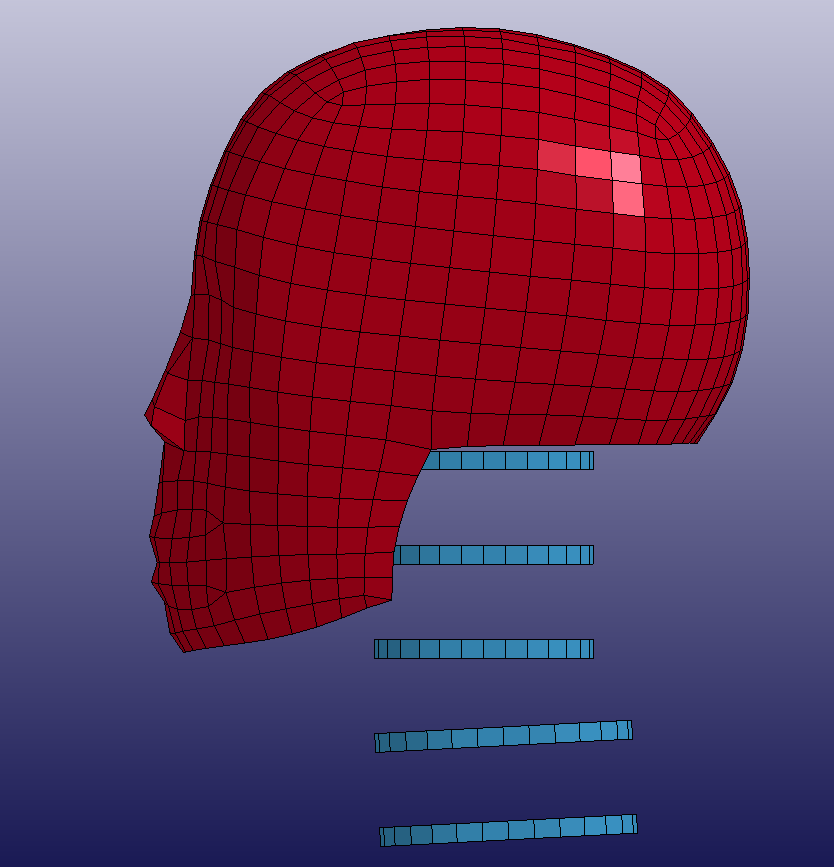 Contents Part II: Mesh Tutorials | Chapter 4: Introduction to the ElGen Interface | Print page 4.1. Open Existing Keyword FileClick File > Open > LS-DYNA Keyword File.Open file head_and_neck.k.Click Right render button. « Chapter 4: Introduction to the ElGen Interface 4.2. Generate Solid Elements by Shell Offset »