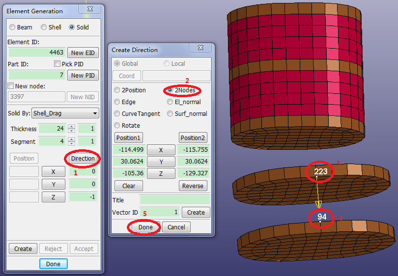 Click in the Element Generation Interface to launch the Create Direction Dialog.