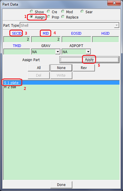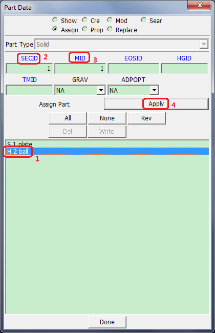 Click MID in the bottom panel, then select 2 material for plate and click in the Link MAT dialog.