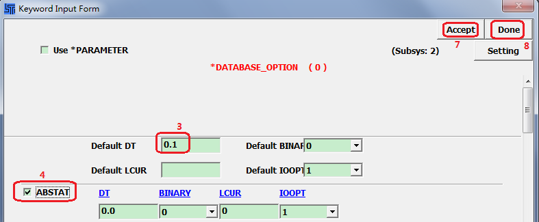 3. Enter Default DT=0.1 in the Keyword Input Form popup.