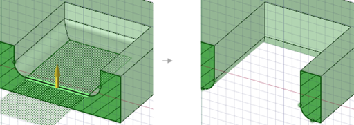 Pulling a pocket with rounded edges down through the bottom of a solid