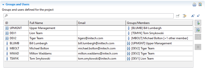 All members of the team, i.e. users and groups of users can be defined and managed. They can be either assigned directly to an activity or to a pre-defined role.