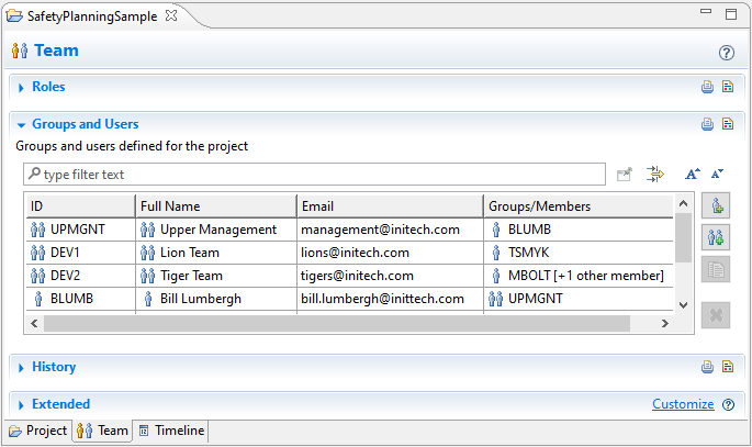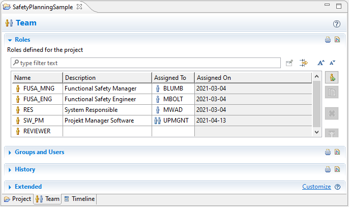 This topic explains how to use medini analyze to manage the project team and its responsibilities. For safety planning, you first need to identify the users and groups that will be part of the project team. Then you define project roles and assign them to users.