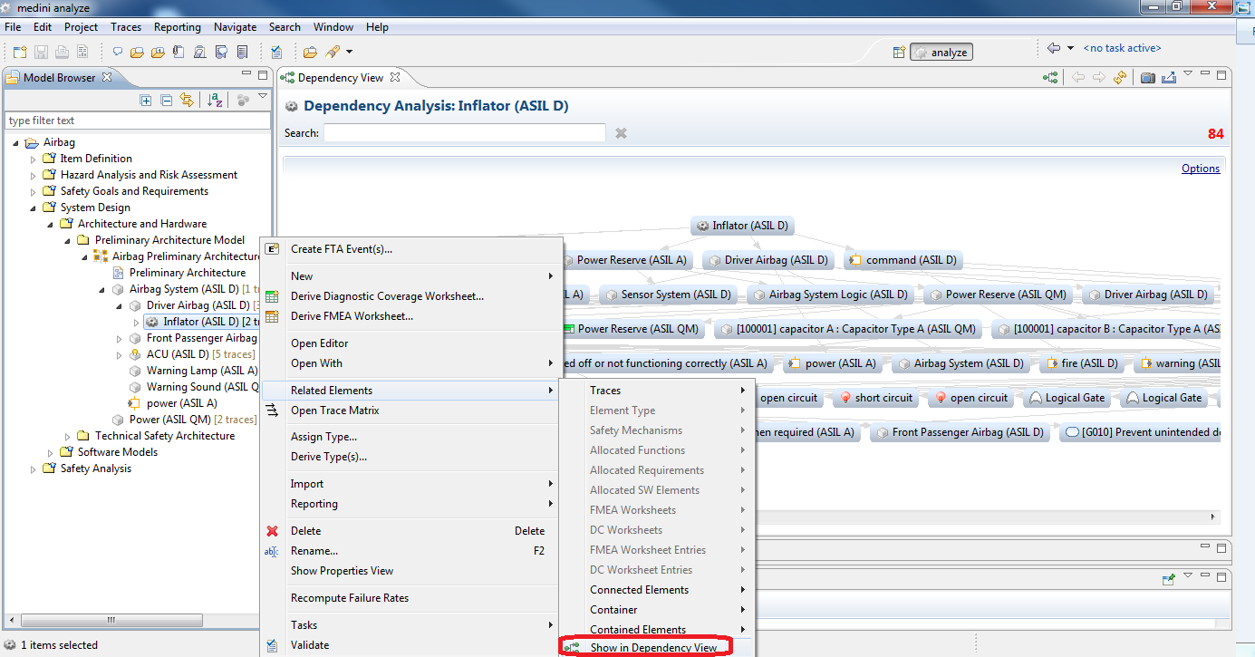 Select Focus on from an element which is displayed on the dependency viewer