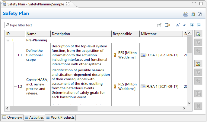 1. In the Model Browser, double-click the added Safety Plan to open the Safety Plan Editor.