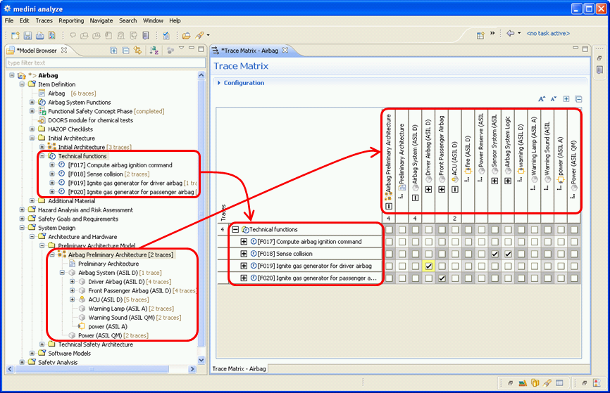 Traceability is a key feature of medini analyze. It is used to e.g.: