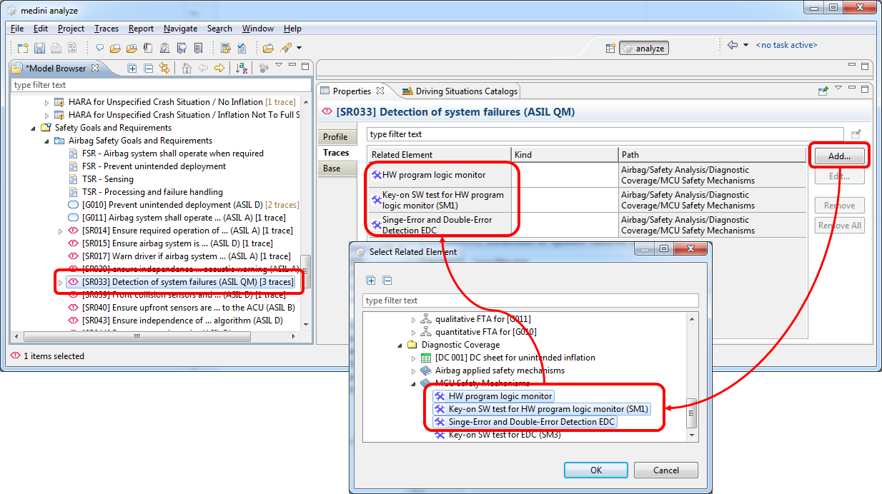 Relate FTA models or FMEA models to safety requirements or safety goals