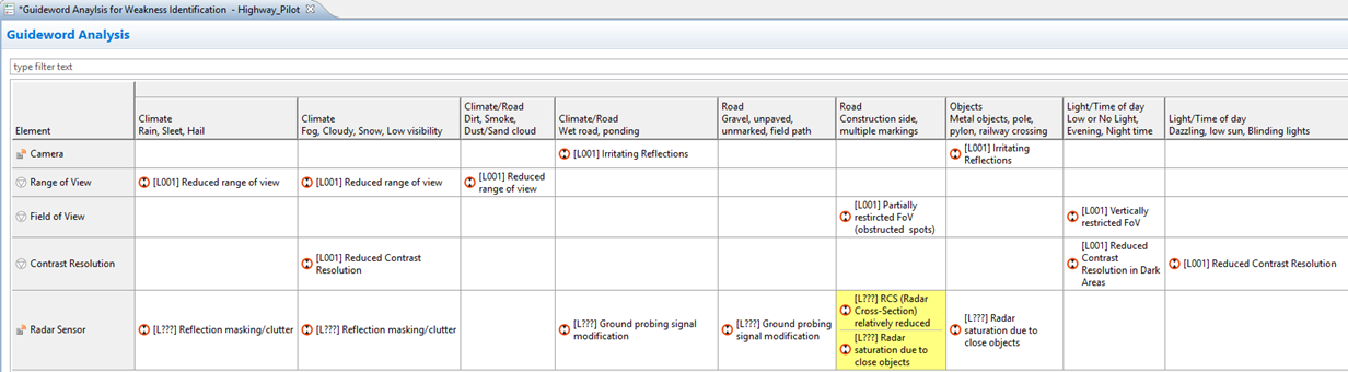 新しく導入されたコンセプトである限界と脆弱性をカバーするために、HAZOPガイドワードエディタが拡張されました。これによって、設計に潜むSOTIF上の弱点およびサイバーセキュリティ上の脆弱性を体系的に特定するためにこのエディタを使用する事ができるようになります。 ![]() |