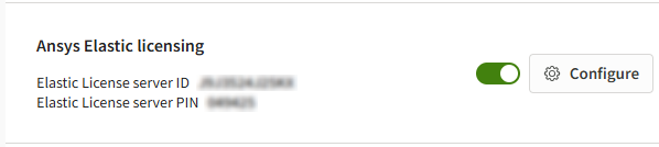 1. On the Administration > License Settings page, locate Ansys Elastic licensing and click Configure.