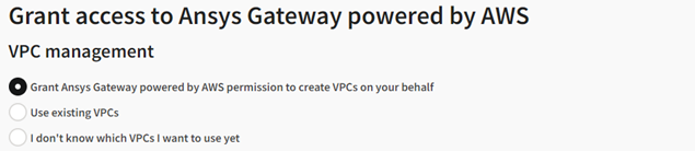If Grant Ansys Gateway powered by AWS permission to create VPC on your behalf is selected, the following EC2 permissions are added: