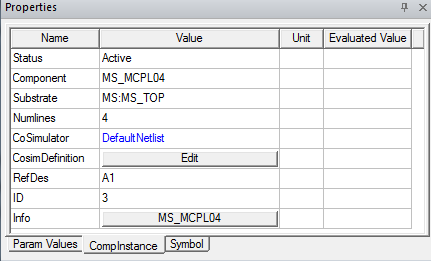 By default, when a component is placed, Electronics Desktop automatically associates a substrate definition with the CompInstance. Not all components need substrate definitions. If it is present, the Substrate definition are shown in the Substrate property in the CompInstance tab.