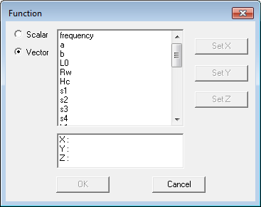 A vector function, in which the values of the vector's x-, y-, and z-components are given by functions. To enter a functional vector: