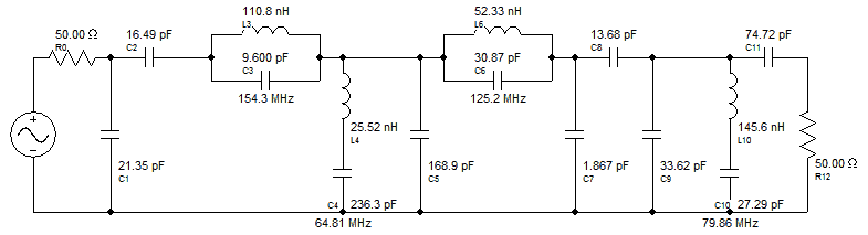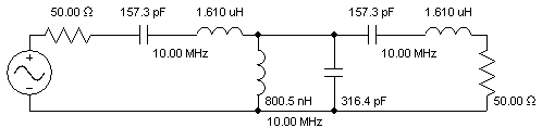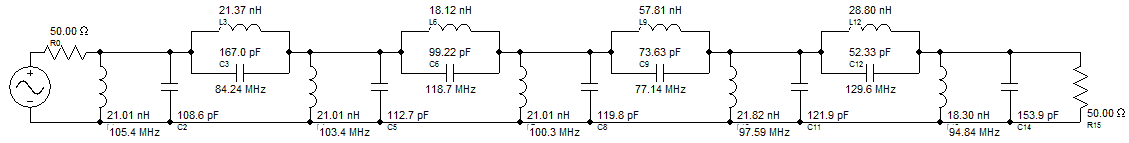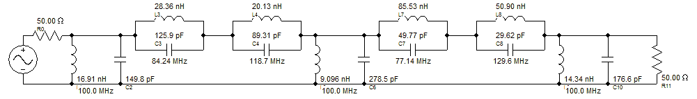 Equal Inductor Classical Topology (Some shunt inductors altered slightly to restore 50 Ohm source resistance)